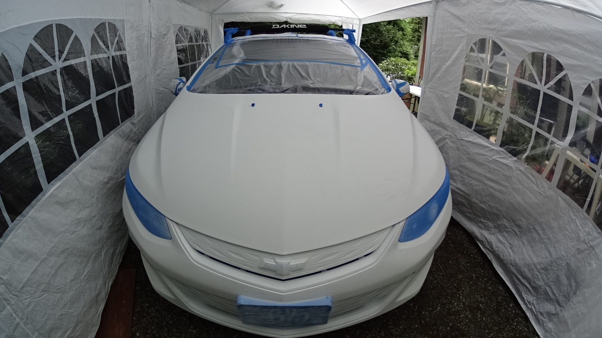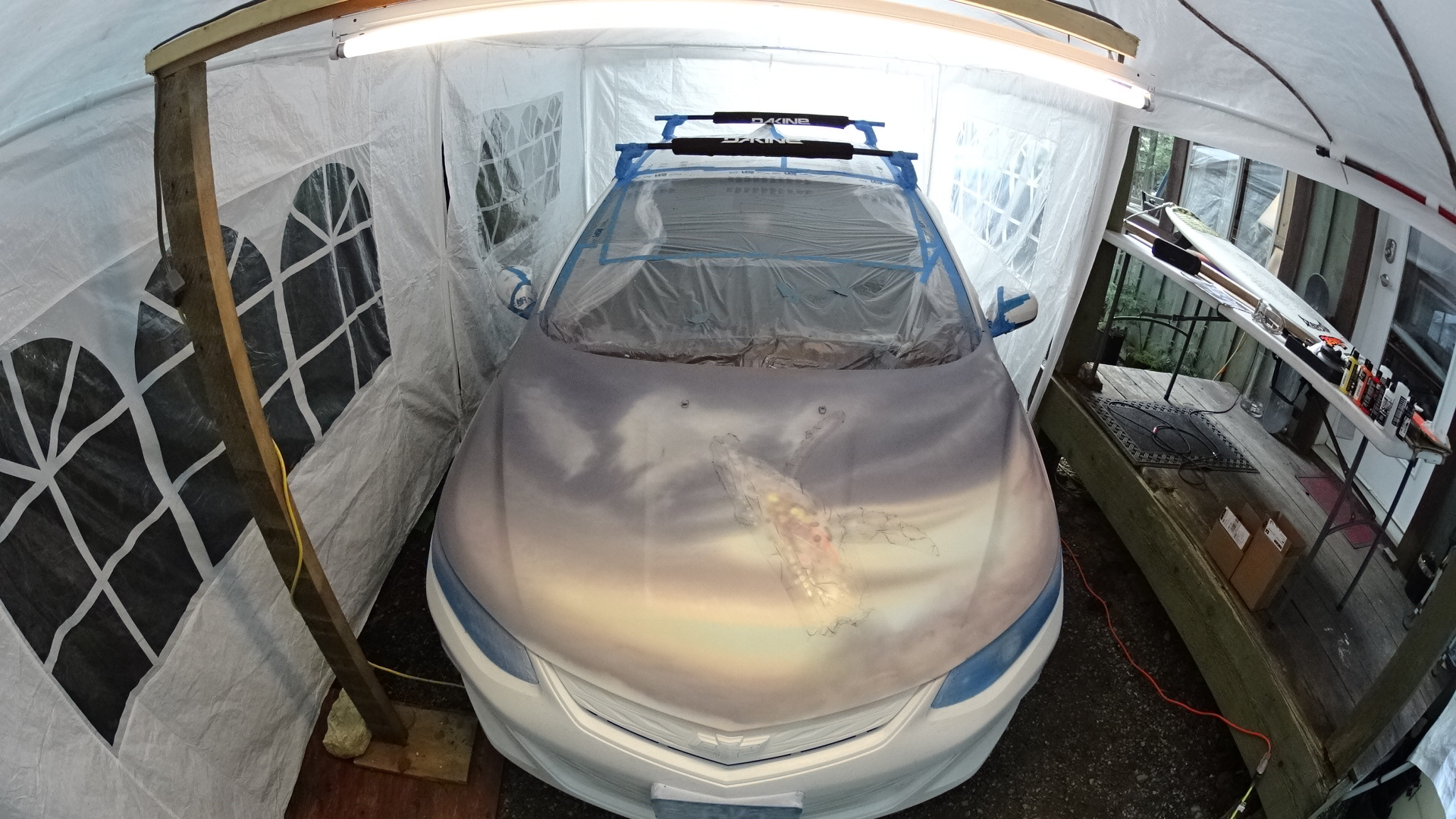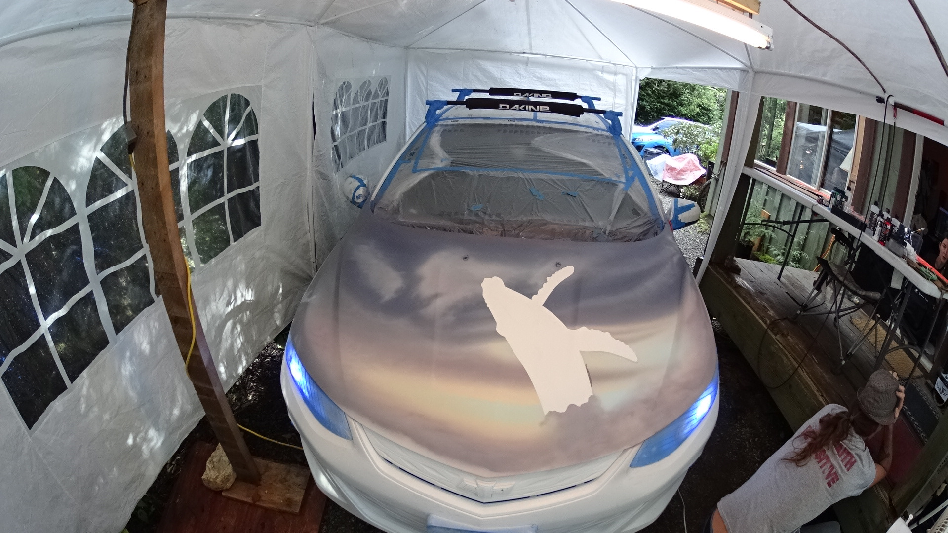 Airbrushing the hood of a car