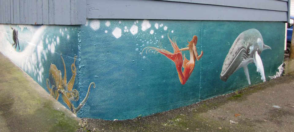 Outdoor mural in Tofino